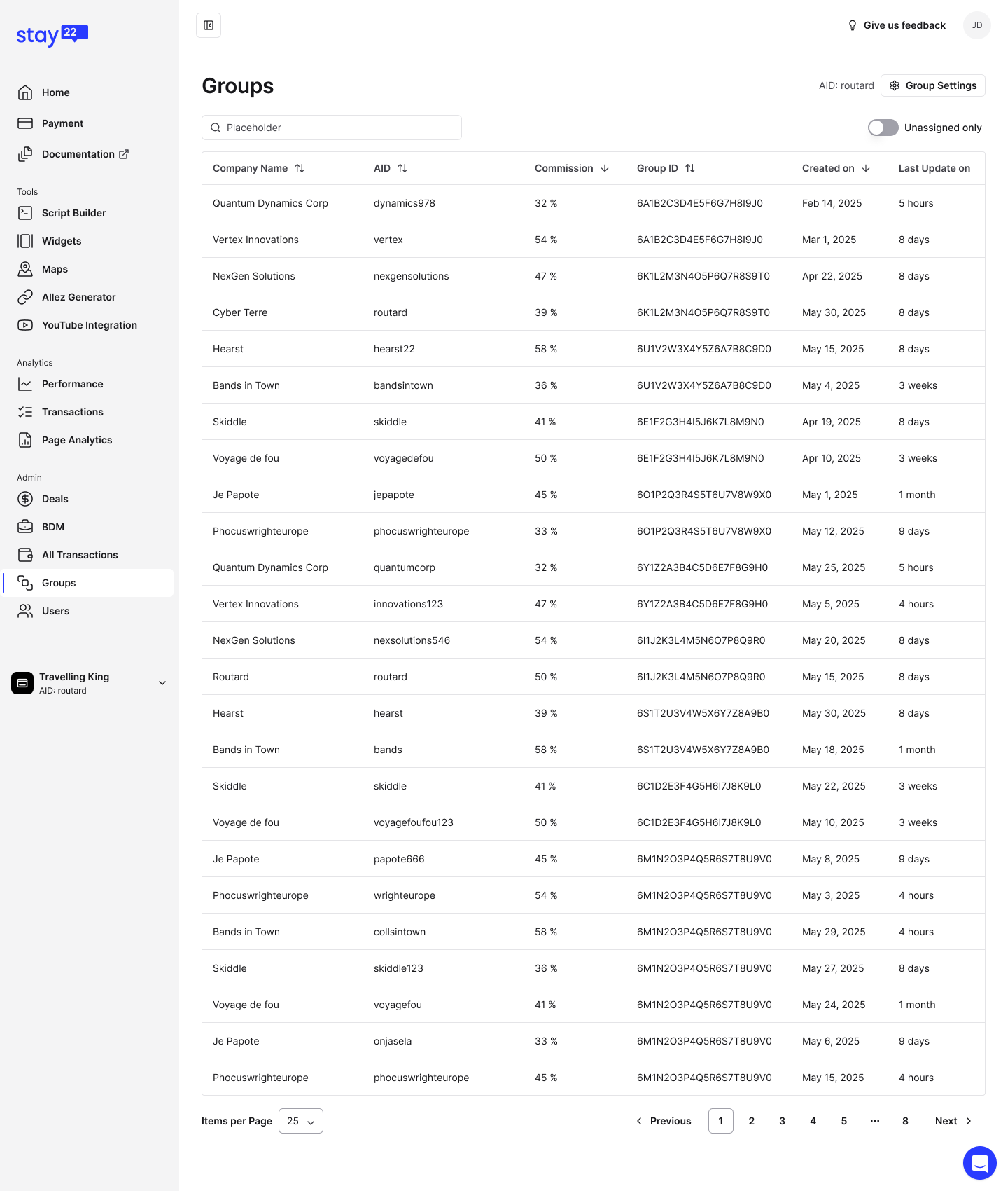 Stay22 · New dashboard rollout (stealth release) · 2025